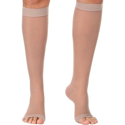 Made in USA - Sheer Compression Socks for Women 20-30mmHg Open Toe - Toeless Graduated Support Knee High Stockings - A215