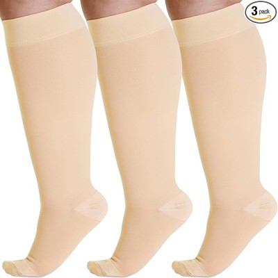 (3 Pairs) Plus Size Graduated Support Opaque Compression Knee High Socks for Women and Men 20-30mmHg | For Diabetic, Lymphedema,